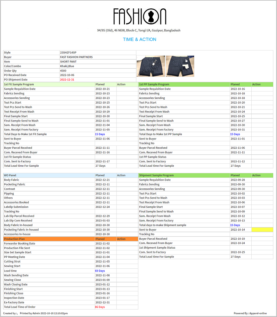 PRODUCTION PLAN: It has been designed for managing & planning garment manufacturing by scheduling styles based on factory lines & calculating the production time required based on the number of operators as well as line efficiency shown by the graphic.